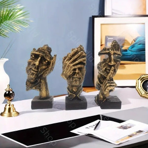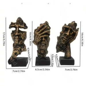 Meniškos, sunkios rankų darbo skulptūrų simboliai iš ekologiškos (dirbtinis akmuo) medžiagos - “Nematau, Negirdžiu, Nekalbu".